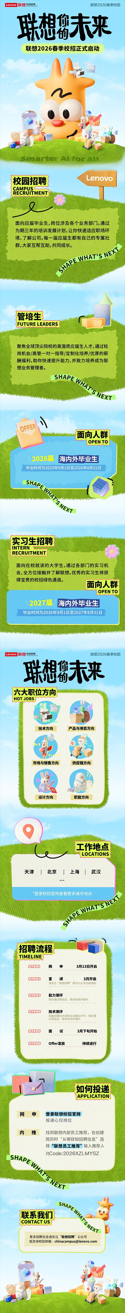 世界500强企业—联想集团2026届春招2027届实习!